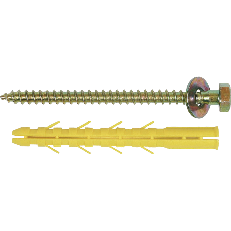 Cheville Ø12x130 + tirefond tête hexagonale Ø10x140.
