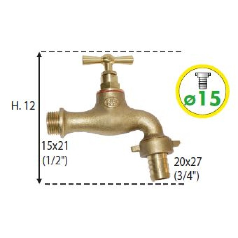 Robinet à clapet - Entrée. 15x21 (1/2") - Sortie. 20x27 (3/4") - Matière : laiton