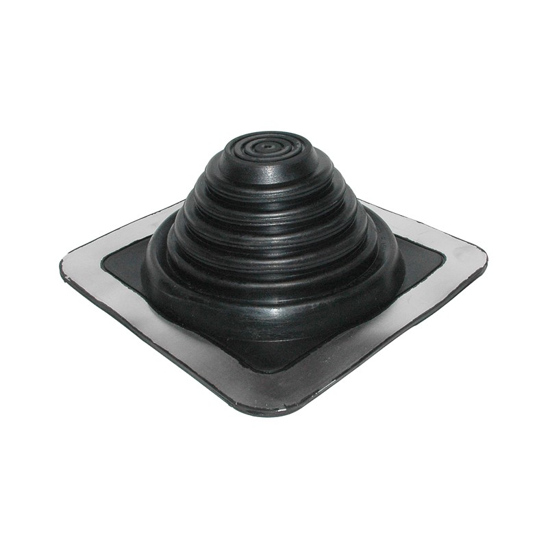 Sortie de toiture ronde universelle - Embase carrée malléable. Manchon en caoutchouc ajustable vulcanisé. Matière : manchon EPDM noir vulcanisé + embase aluminium.