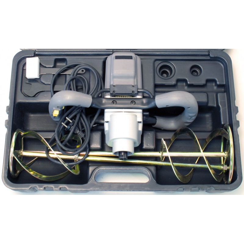 Malaxeur 1700 W à démarrage progressif. 2 vitesses variables. Poids : 6 kg. Livré en mallette de transport avec 2 tiges (Ø 140 et 160 mm).