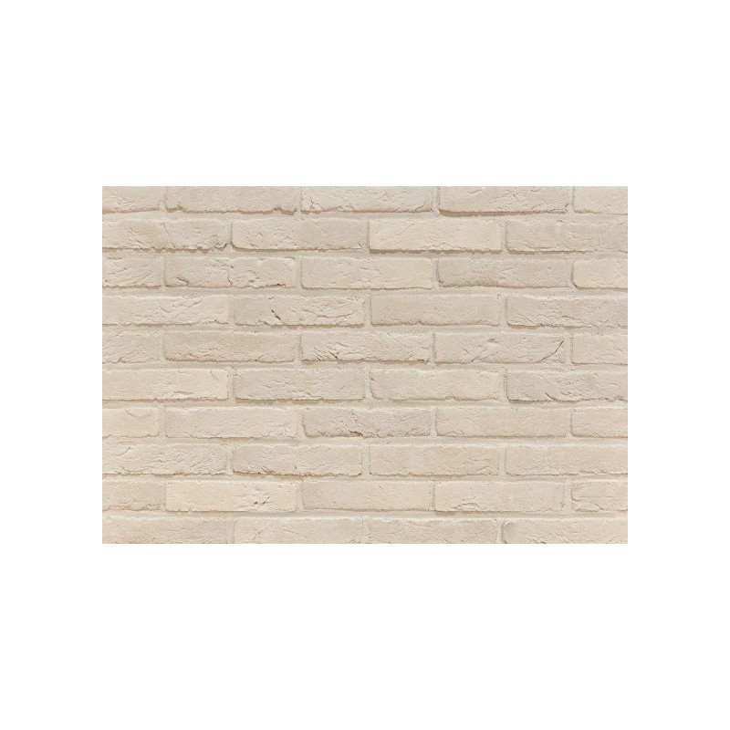Brique moulée main aux arêtes irrégulières de couleur blanche brume nervurée rugueuse, avec sablage.