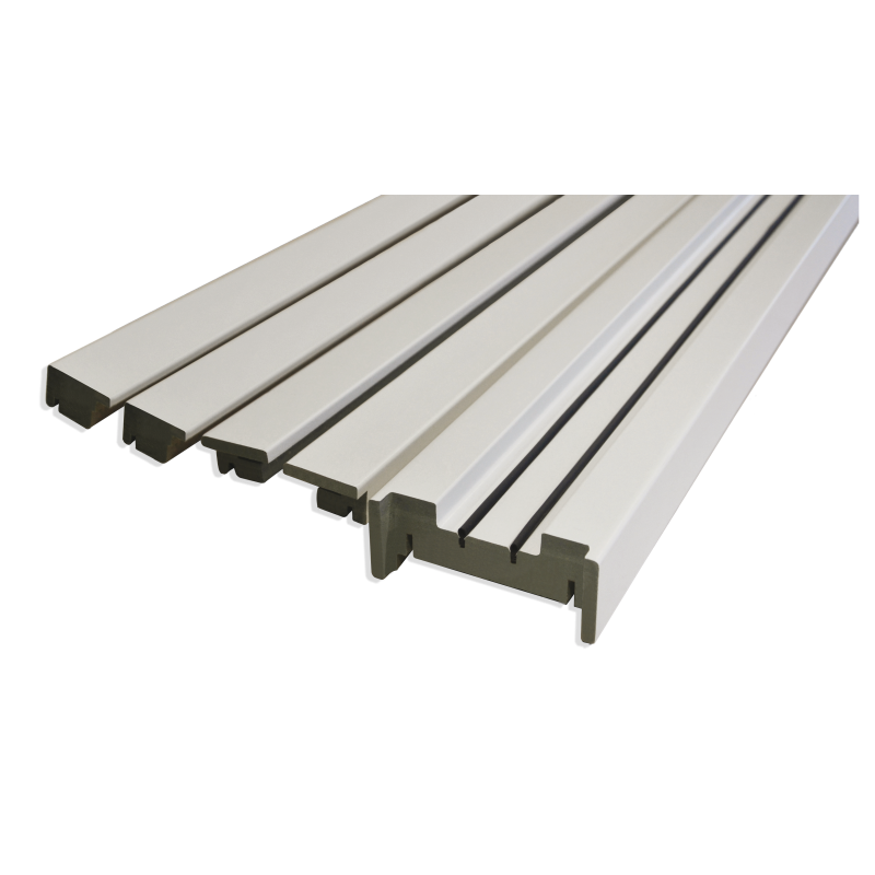 "Habillage de finition couvre-joints intégré pour châssis Sillage INITIAL et INTÉGRAL. MDF hydrofuge enrobé blanc RAL9010. Simple vantail. Traverses à recouper à la largeur. Prêt à poser ou à peindre.