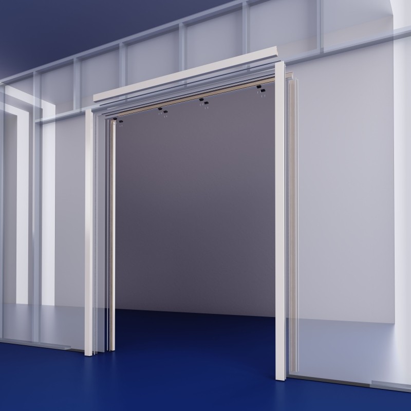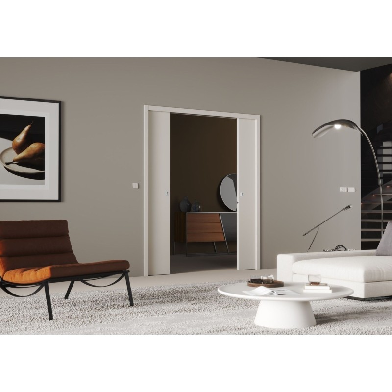 Le Kit Xpress Double est conçu pour habiller les châssis à galandage Scrigno à double porte coulissante. Il s'installe après pose du châssis et permet de finaliser l'encadrement visible des portes coulissantes qui disparaît dans la cloison.