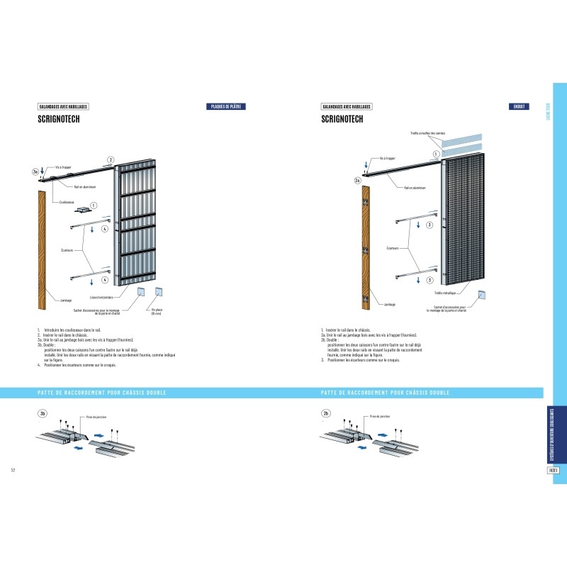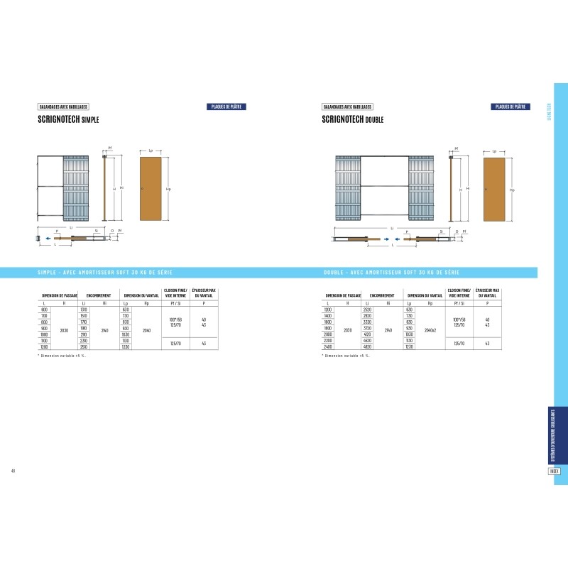 Scrignotech est un galandage en acier zingué avec habillages, un système de coulissement extrêmement fiable et durable dans le temps, d'une qualité exceptionnelle. Il répond aux exigence standard, s'adapte à tous les espaces et facilité l'installation de vantaux simple ou doubles.