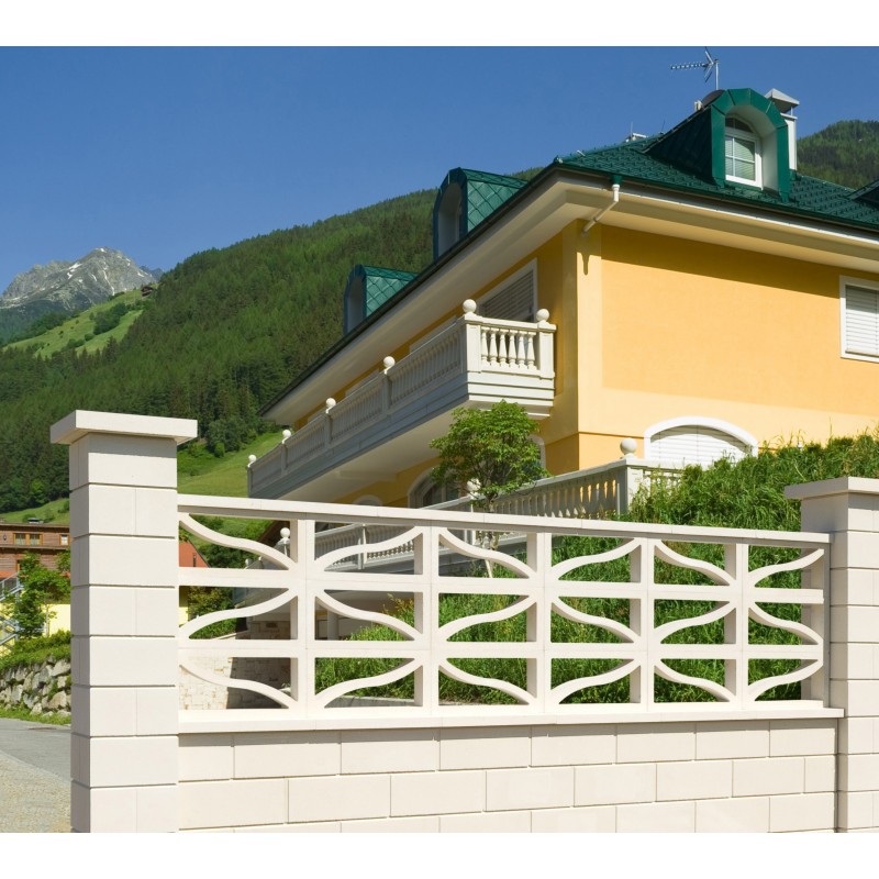Tablette d'appui pour claustra fabriquée en pierre reconstituée "vibrée et pressée" et sans armature. Dimensions 4 x 12 x 8.5 x 45 cm.