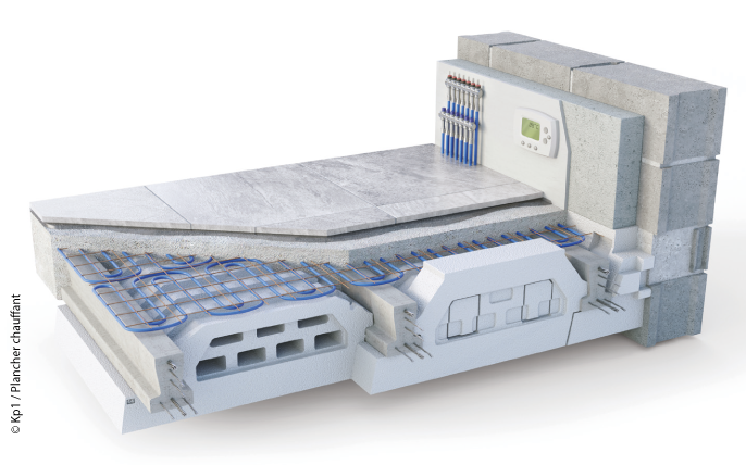 | Plancher sur haut de sous-sol | Poutrelle + hourdis isolant PSE M4 + treillis pour plancher + béton prêt à l’emploi ou Poutrelle + hourdis non isolant + treillis soudé pour plancher + béton prêt à l’emploi en dalle de compression + isolant + béton pour dalle flottante |