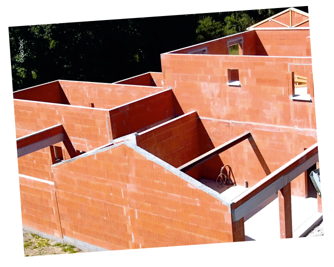 Puis, de toutes les parties qui s’élèvent au-dessus du sol comme les murs, la charpente, la couverture, les menuiseries extérieures. Le gros oeuvre s’achève lorsque le bâtiment se trouve hors d’air et hors d’eau. Il se distingue du second oeuvre qui vient ensuite avec l’isolation, les cloisons, la décoration, les différents équipements de la maison.