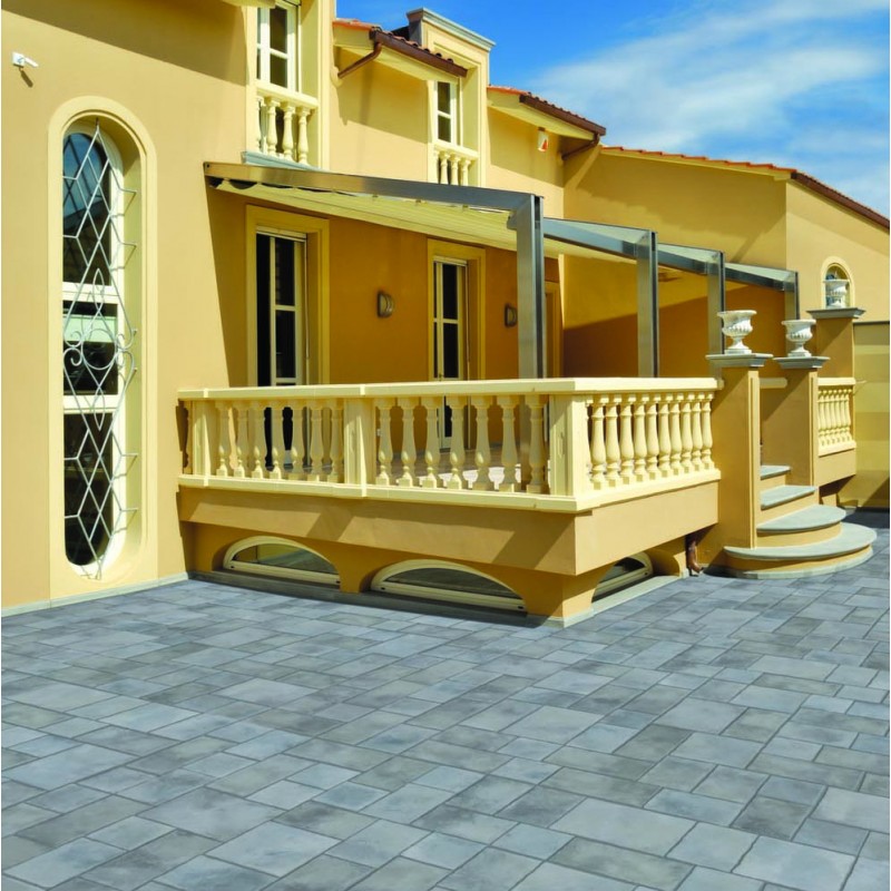 Dalle domus imite à la perfection la pierre naturelle. Vendue en pack 12,15 m². La composition des 5 dimensions (30 x 30 x 3,5 ; 45 x 30 x 3,5 ; 45 x 45 x 3,5 ; 60 x 30 x 3,5 et 60 x 45 x 3,5 cm) permet de jouer avec les formes et les contrastes. Disponible en 2 coloris : Crème et Pirineos.