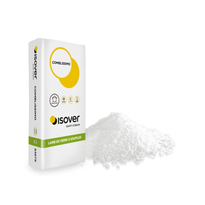 Laine de verre en flocons pour l'isolation par soufflage mécanique des combles perdus : ép. de 235 à 655 mm et R de 5 à 14 m².K/W.