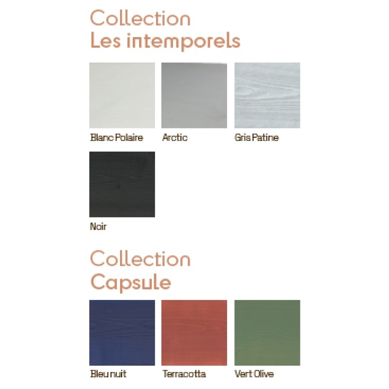 Sapin du Nord. Finition : finition en phase aqueuse. 7 coloris : Blanc Polaire, Arctic, Gris Patine, Noir, Bleu Nuit, Terracotta, Vert Olive.2 profils claire-voie : Rythmix® Biseau 21x58 mm, Rythmix® Carré 40x40 mm. 3 profils à emboitements : Union 20x125 mm, Kinna 12x135 mm, Gränna 15x180 mm.Surface rabotée brossée. Réaction au feu : F.Conseil de l'expert : Pour un intérieur chaleureux avec une touche de caractère, unissez le terracotta avec le noir.