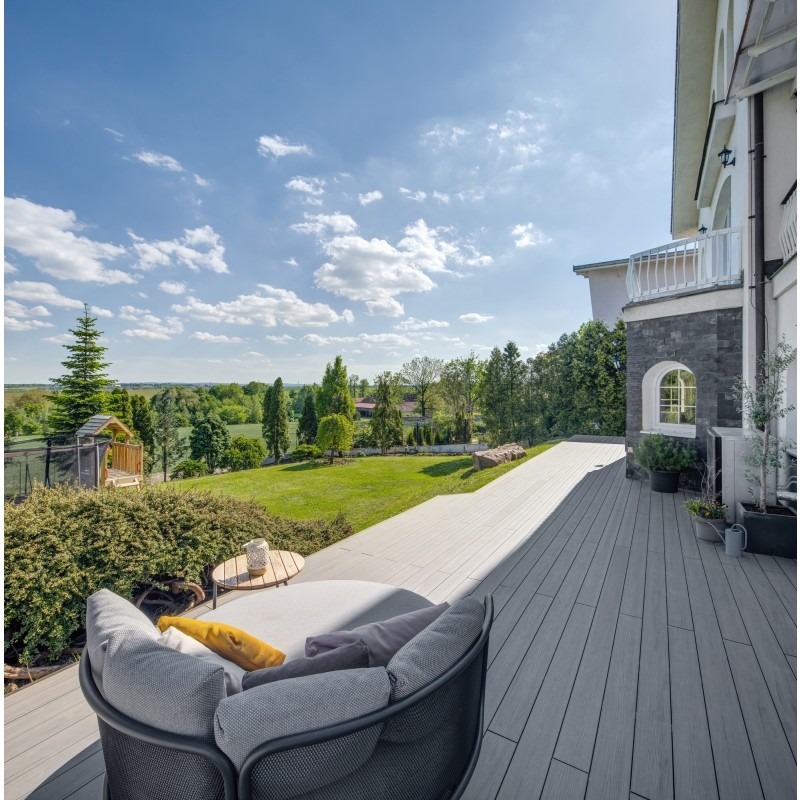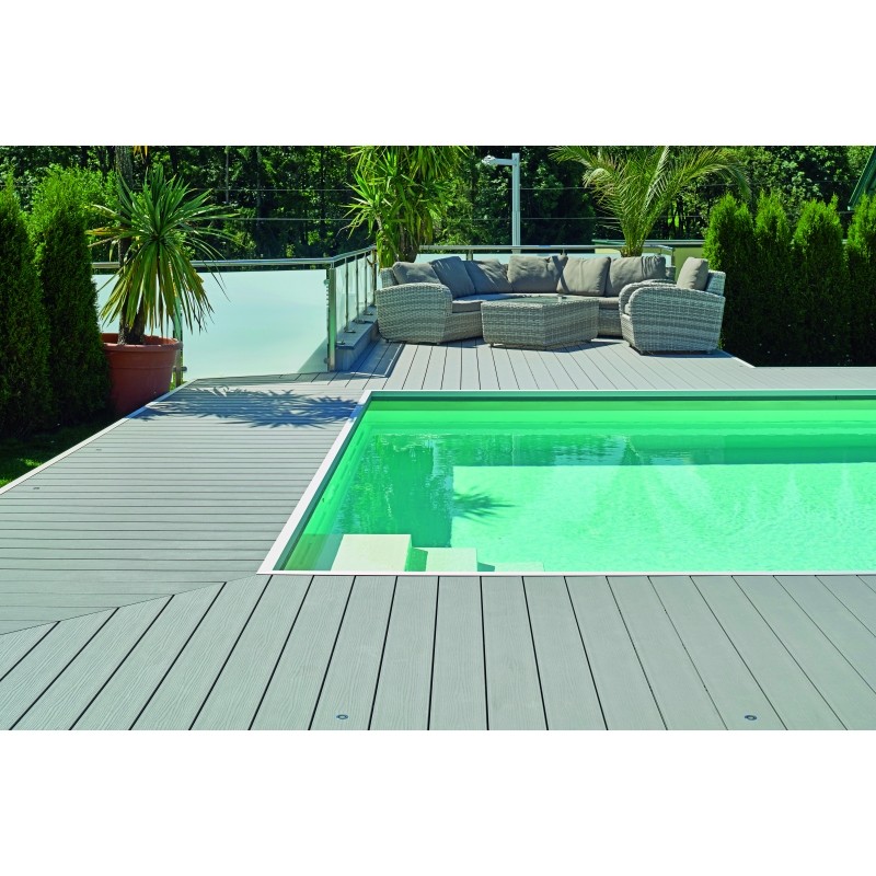 Cette lame est destinée à tout usage, dont le recouvrement de lieux à passage intensif. Elle convient parfaitement aux plages de piscine, aux terrasses... Son enveloppe protectrice complète la rend extrêmement résistante aux rayures et aux taches. Elle est très confortable pieds nus. Elle possède de nombreux avantages : - sans écharde - ne se fend pas - 100% recyclable - entretien très facile - robuste - durable - facile de pose - bonne résistance à la glisse... Elle dispose de nombreux accessoires de finition coordonnés. 5 coloris au choix : Chêne cendré, Chêne irisé, Chêne champêtre, Chêne de montage et le nouveau coloris 2026 Brun d'Automne. 2 faces utiles (une face unie et une face veinée) L'épaisseur de 20 mm permet de limiter la hauteur globale de l'ouvrage.