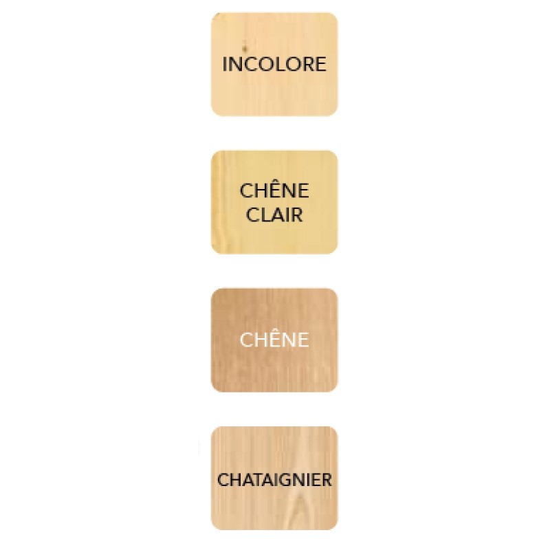 La lasure pénètre dans le bois pour le protéger et le décorer Disponible en 4 teintes : incolore, chêne clair, chêne, châtaignier. Existe également en 1L.