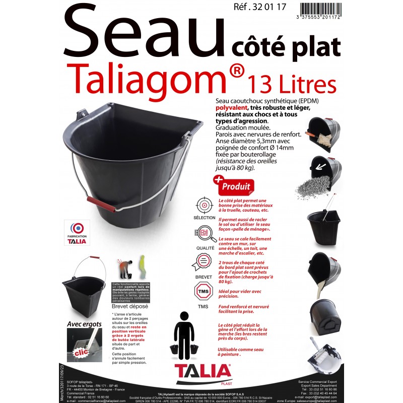 SEAU TALIAGOM 13L POIGNEE + ERGOTS ANSE 5,3MM COTE PLAT