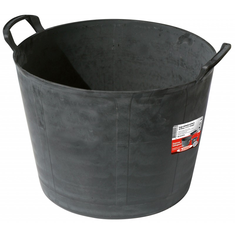 En caoutchouc synthétique. Poignées moulées dans la masse. Capacité : 42 L. Poids : 1,5 kg. Épaisseur : 2,5 mm.