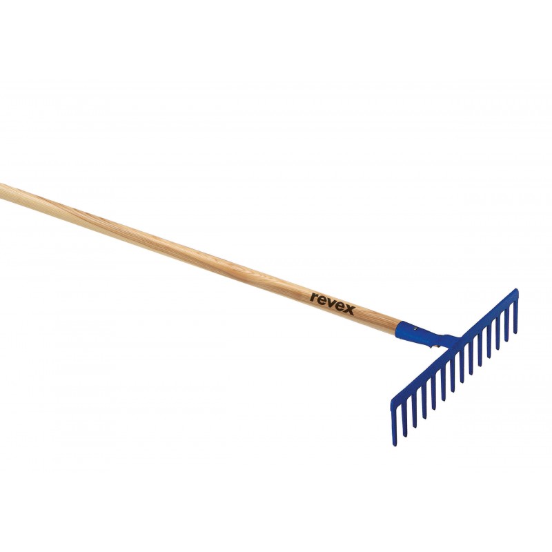 14 dents droites, longueur 7 cm. Pour régler, niveler le béton. Permet aussi de rassembler les déchets, de nettoyer les sols. Manche frêne verni PEFC.