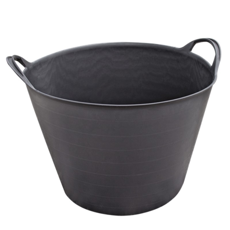 Pour produits pâteux : peintures, plâtres, colles. Matière PEBD, polyéthylène basse densité. Flexible et résistante aux chocs. Ame métallique de renfort dans les poignées de transport. Volume maximal 42 litres.