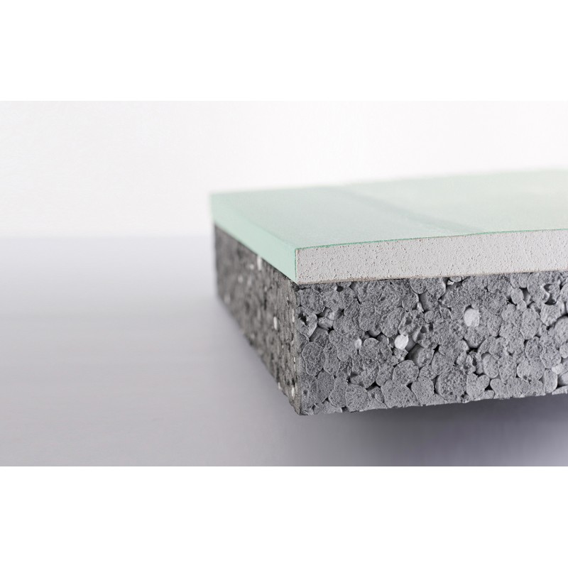 Complexe de doublage constitué d'un panneau isolant en polystyrène graphité collé sur une plaque de plâtre à bords amincis de 13 mm hydrofuge.
