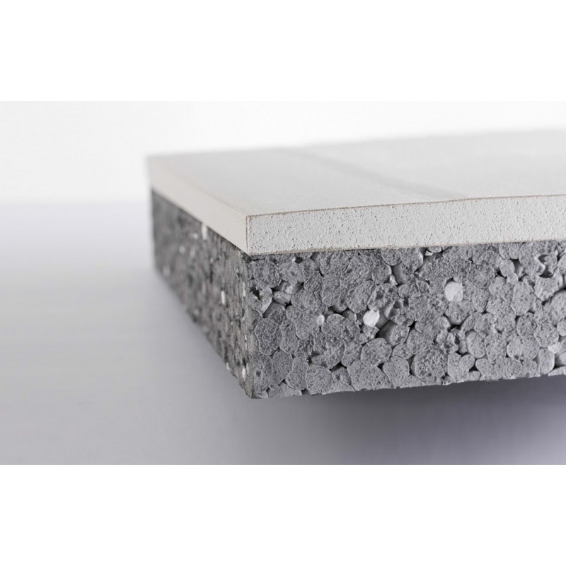 Complexes de doublage constitués d'un panneau isolant en polystyrène graphité ou blanc collé sur une plaque de plâtre à bords amincis de 13 mm standard, hydrofuge ou acoustique.