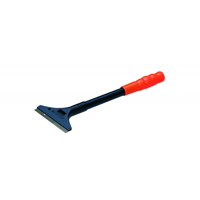 Acier. Poignée plastique. Lame acier trempé, affûtée. Lame de 100 mm. Longueur totale 40 cm.