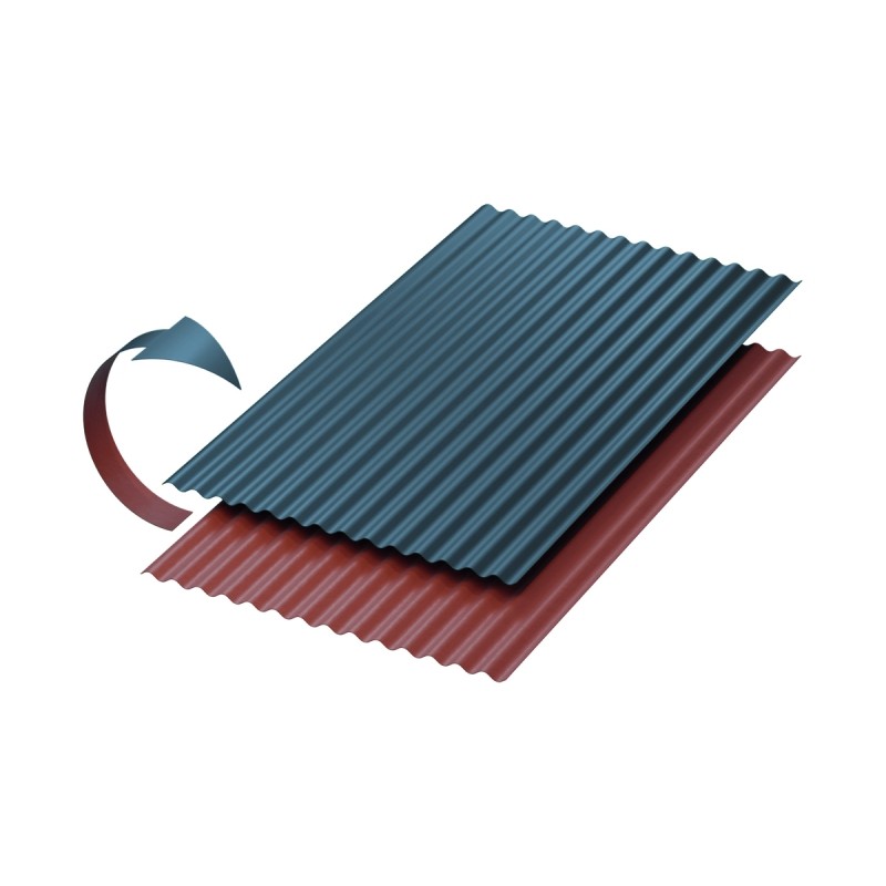 La plaque a un profil ondulé réalisé en co-extrusion est un bon commercial avec des mesures de 76 mm et hauteur de 18 mm, sa caractéristique principale est celle des finitions : les deux côtés de la plaque sont en fait de couleur différente (rouge corail avec gris foncé ou vert olive avec terre naturelle), à vous le choix d’exposer la couleur que vous préférez. Le produit est léger, pratique, facile à transporter, simple à installer et peut être installé en fonction de la direction des vents dominants, d’un côté à l’autre.