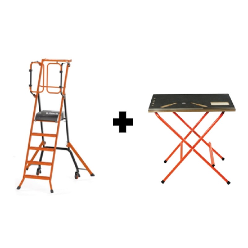 PIRL GARDIA 140 CM : Toujours aussi pratique qu’un escabeau mais normé PIRL pour un travail en hauteur en toute sécurité Etabli de chantier pliant avec revêtement antidérapant ULTRA-COMPACT