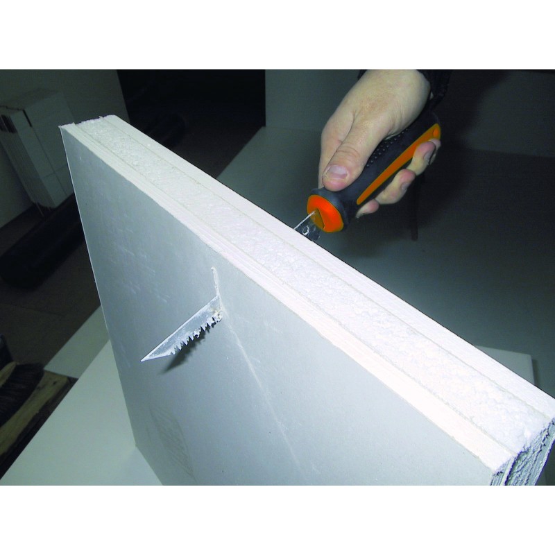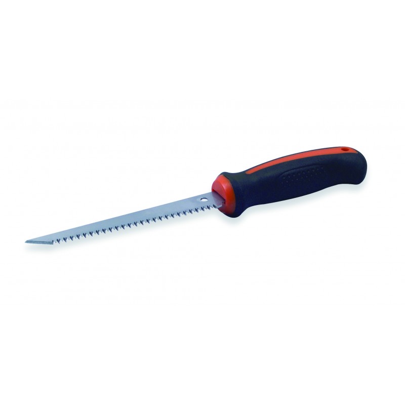 Lame acier à triple denture extrêmement agressive. Poignée ergonomique bi-matière. Coupe en poussant ou en tirant. Pointe coupante ou autoperforante. Coupe : plâtre, plaques de plâtre, bois, PVC, etc.