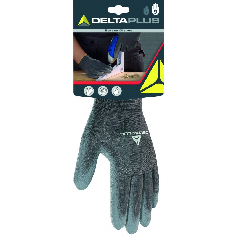 Gants 100 % polyester. Enduction polyuréthane sur paume et bout des doigts. Jauge 13.