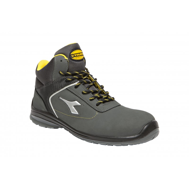 Chaussure haute S3 en Action Nubuck hydrofuge, nylon et PU. Embout multicouche 200J. Chaussant 11, K SOLE, semelle de propreté amovible en polyuréthane antichoc. Sans métal. Semelle intercalaire en mousse PU. Semelle d'usure en polyuréthane compact anti-abrasion. Tailles : 35/48. Disponible en 2 coloris : 80013 noir, 75068 gris château.