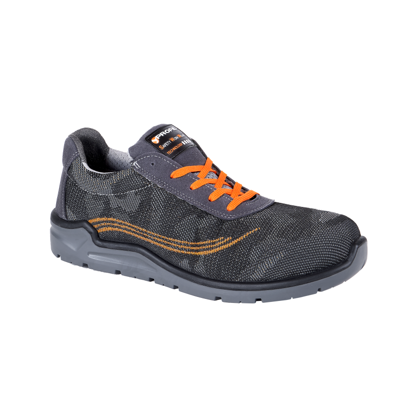 Chaussures de sécurité basses type tennis. Tige textile avec impression camouflage. Haut de tige matelassé doublé. Fermeture par soufflet et languette toile matelassés. Laçage par œillets. Doublure respirante aérée. Première de propreté ergonomique ventilée. Embout 200 joules, de synthèse, léger, large, athermique et amagnétique. Semelle anti-perforation composite légère, souple, athermique et amagnétique. Semelage PU2D. Pointures : 39 à 47.