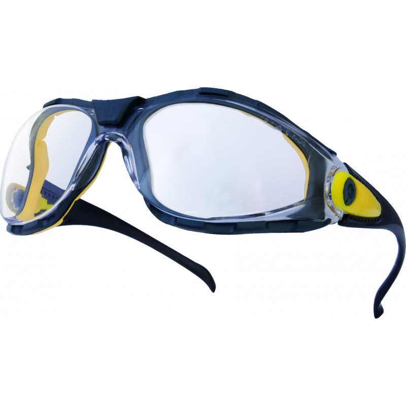 Lunettes polycarbonate monobloc. Nez polycarbonate intégré. Branches nylon inclinables. Protections latérales.