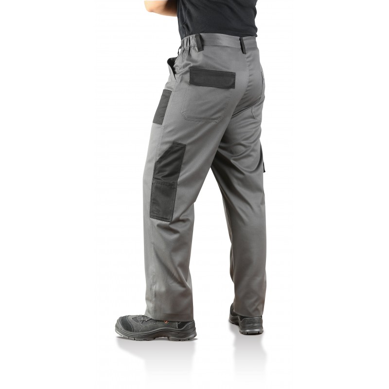 Multi-poche : 1 poche arrière avec rabat velcro, 1 poche arrière avec zip, 2 poches sur le côté droit, 1 poche avec rabat velcro côté gauche, 2 grandes poches à l’avant , 1 petite poche avec velcro. Coloris : gris/noir - Tailles disponibles : M à XXL.