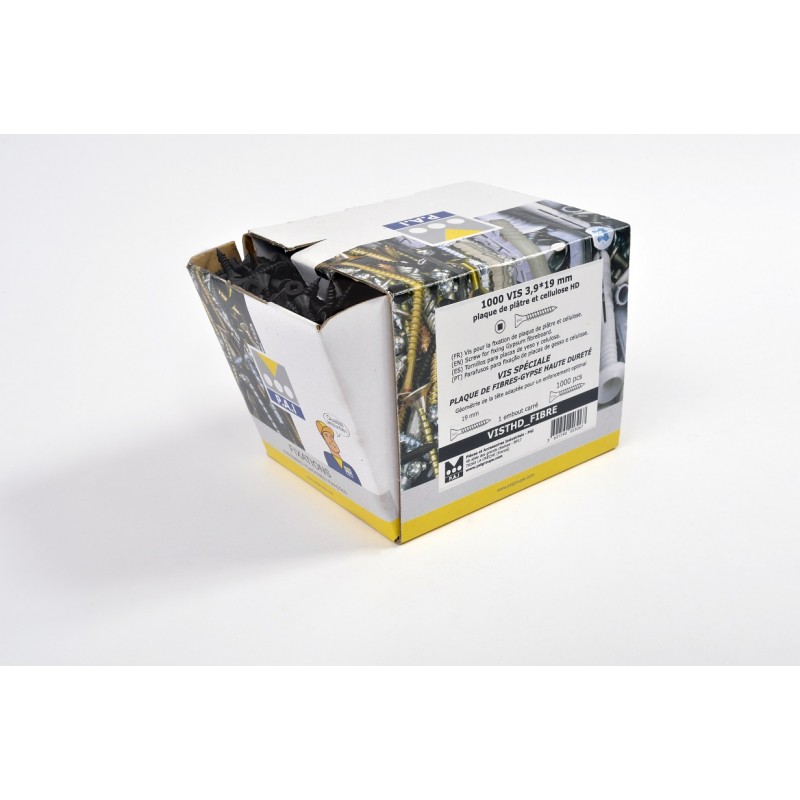 VIS SPECIALE POUR LA FIXATION DES PLAQUES DE PLATRE HAUTE DURETE AVEC FIBRE DE CELLULOSE. GEOMETRIE DE LA TETE ADAPTEE POUR UN ENFONCEMENT OPTIMAL. EMBOUT DE VISSAGE CARRE FOURNIS DANS CHAQUE BOITE.