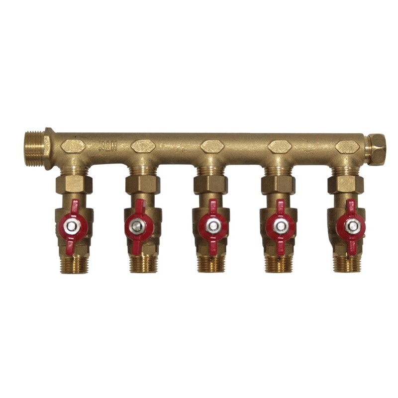 Collecteur Boutté mâle 20x27 femelle 15x21 à écrou mobile avec 5 départs mâles 15x21 avec vannes ACS