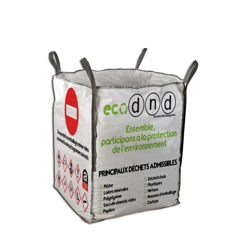 Big bags avec ou sans fermeture sur le haut du sac pouvant recueillir les déchets type, brique, laine minérale, plâtre, sacs ciment, polystyrène, métaux...