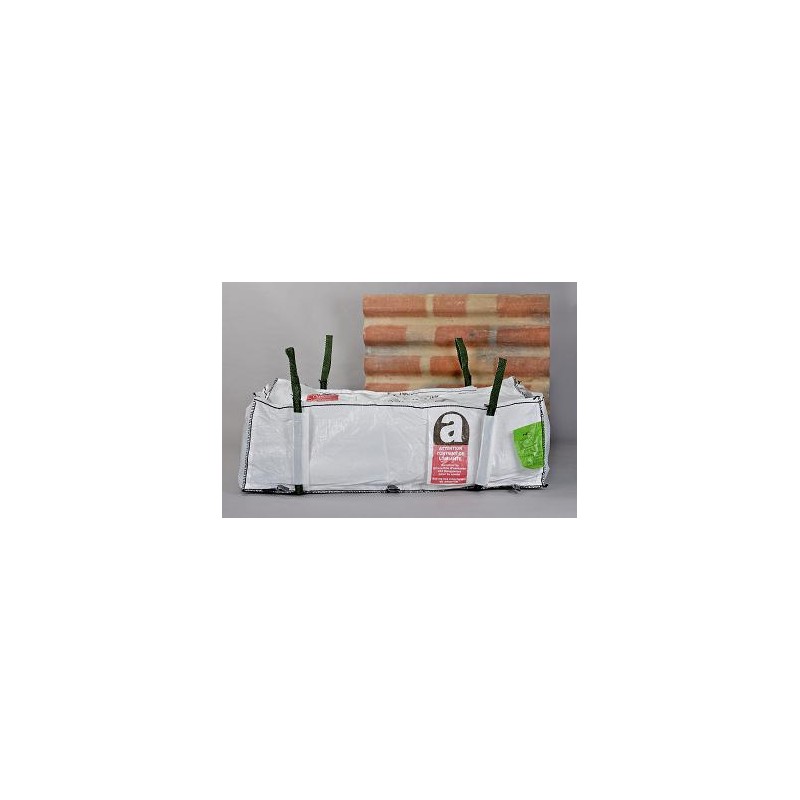 Big bag pour l'amiante liée (plaques fibrociment, tuyaux, bardages...). Dimensions 2600 x 1200 x 300 mm, marquage réglementaire amiante.