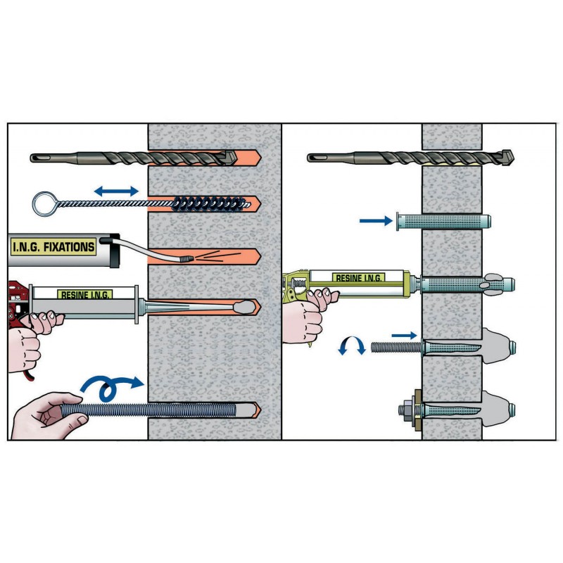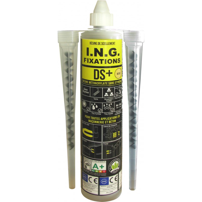 Résine méthacrylate sans styrène polyvalente tous matériaux. Applications principales : gonds de volets, stores, toutes fixations dans matériaux pleins et creux.