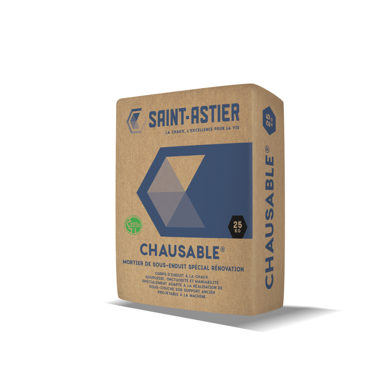 Mortier de sous-couche à base de chaux hydraulique naturelle adaptée aux maçonneries anciennes et support plâtre gros. Prêt à l'emploi. Vendu en sac de 25 kg.