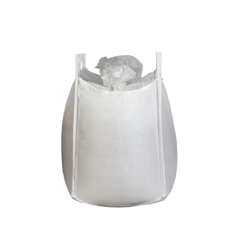 Big bag avec doublure polyéthylène et jupe de fermeture, totalement étanche. Dimensions 90 x 90 x 100 cm, charge 1500 kg.