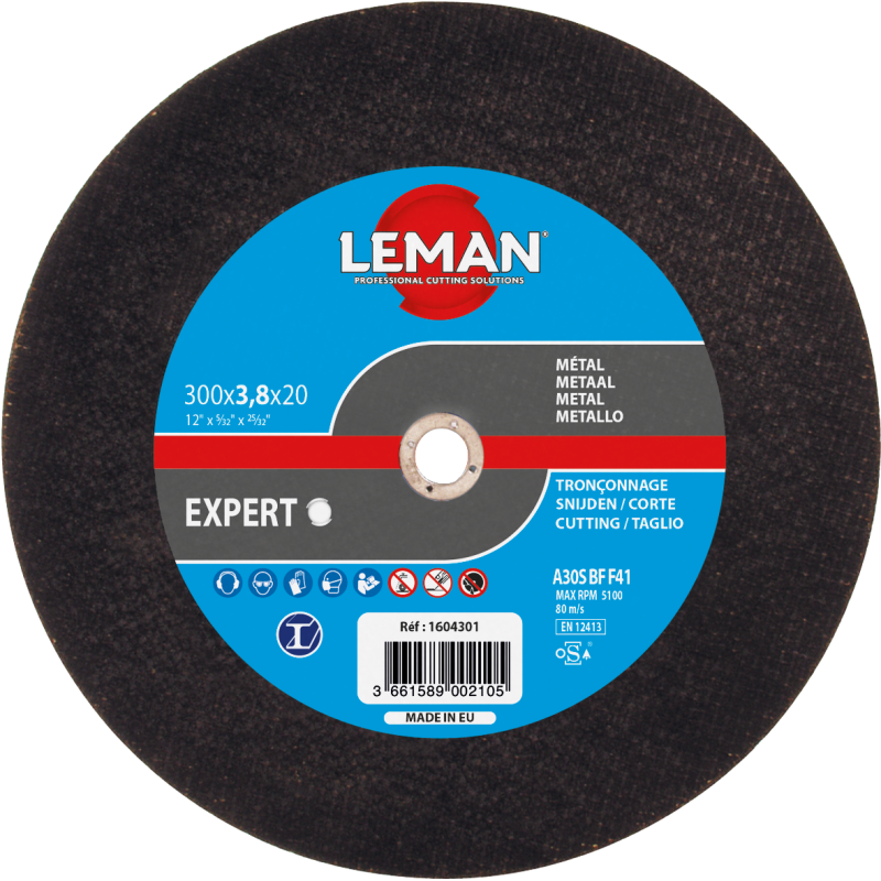 Tronçonnage de matériaux pleins, profilés et tubes. Disque corindon à moyeu plat.