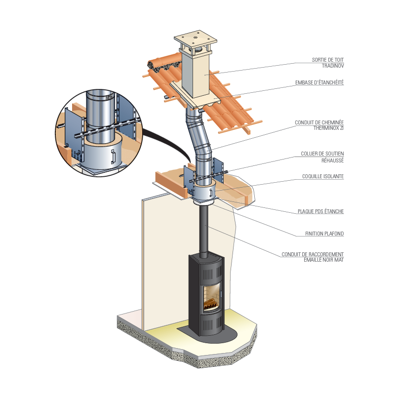 La haute résistance thermique permet une distance de sécurité de 8 cm de la paroi extérieure.