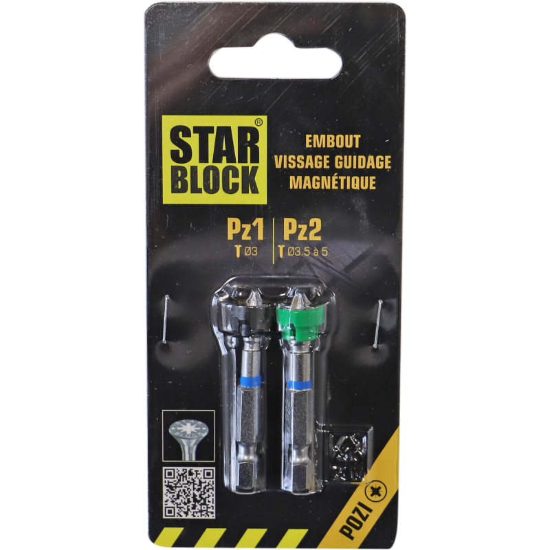 Embouts de vissage magnétique PZ STARBLOCK. 2 Tailles différentes : PZ1-PZ2