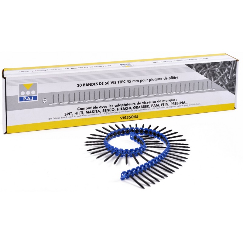 VIS A DOUBLE FILET POUR LE VISSAGE DES PLAQUES DE PLÂTRE OU DES COMPLEXES DE DOUBLAGE SUR DES OSSATURES MÉTALLIQUES OU BOIS. EMBOUT DE VISSEUSE TYPE PHILIPS DANS CHAQUE BOITE.