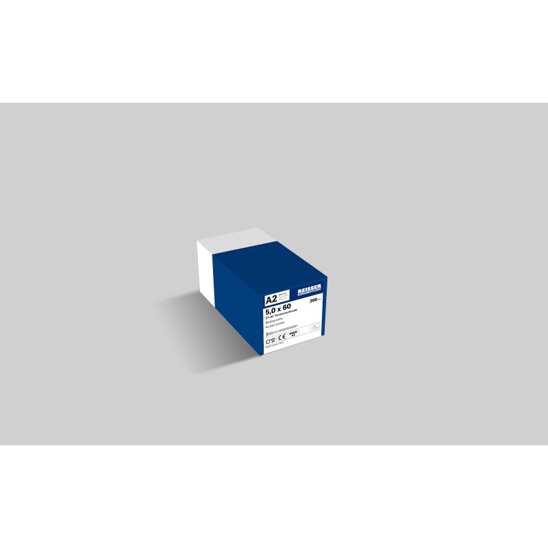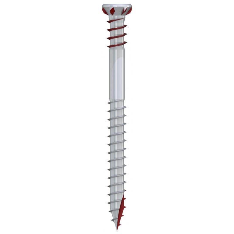 Vis de terrasse en acier inoxydable A2, tête fraisée réduite, filetage sous-tête et pointe anti-éclatement. Dimension : Ø 5 mm. Longueurs : 50 - 80 mm.