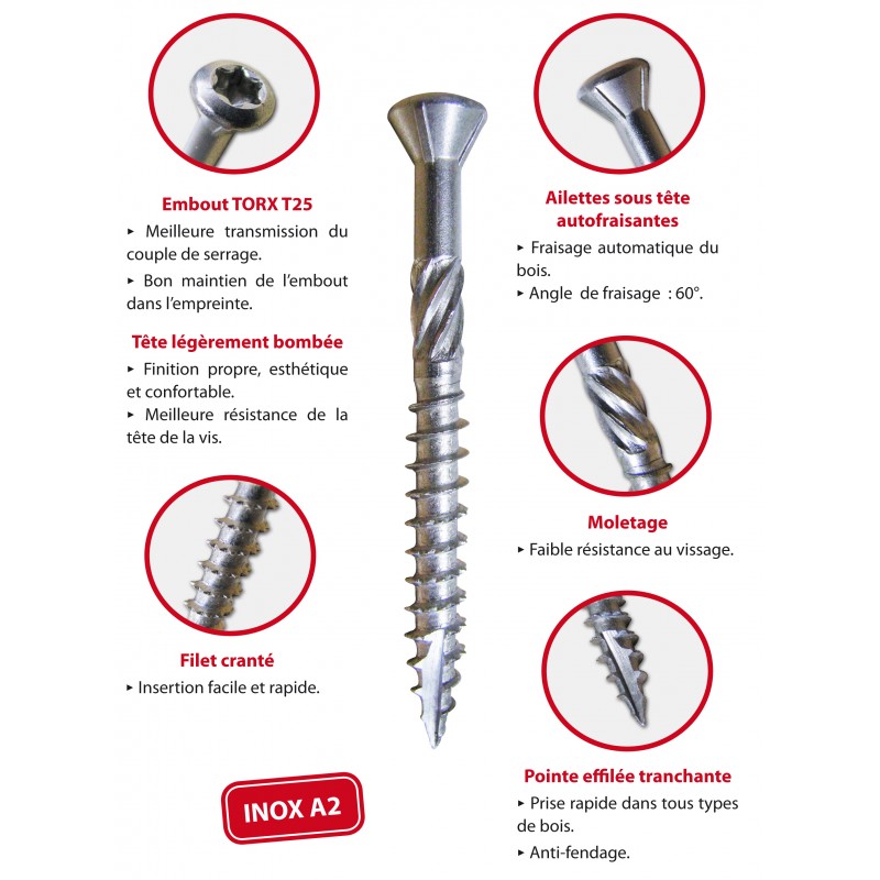 Finition propre - Vis adaptable à tous types de bois - Embout Torx T25