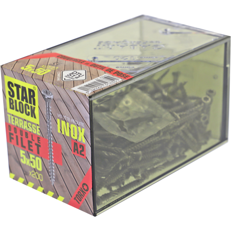 Filet sous tête limite la sortie de la vis en cas de fortes variations hygrométriques.