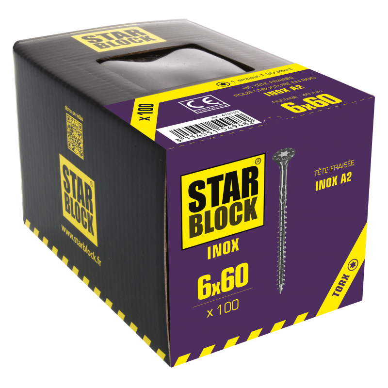 Vis Inox A2 - 6x60 - boîte de 100 STARBLOCK