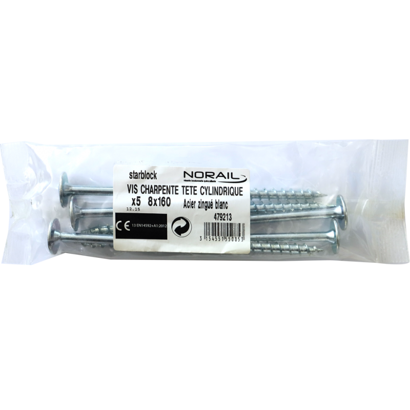 Vis charpente tête cylindrique 8x160 - sachet de 5 STARBLOCK