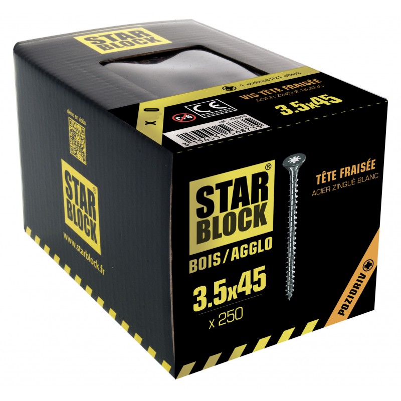 Vis bois et agglomérés - 3,5x45 - PZ - boite de 250 STARBLOCK